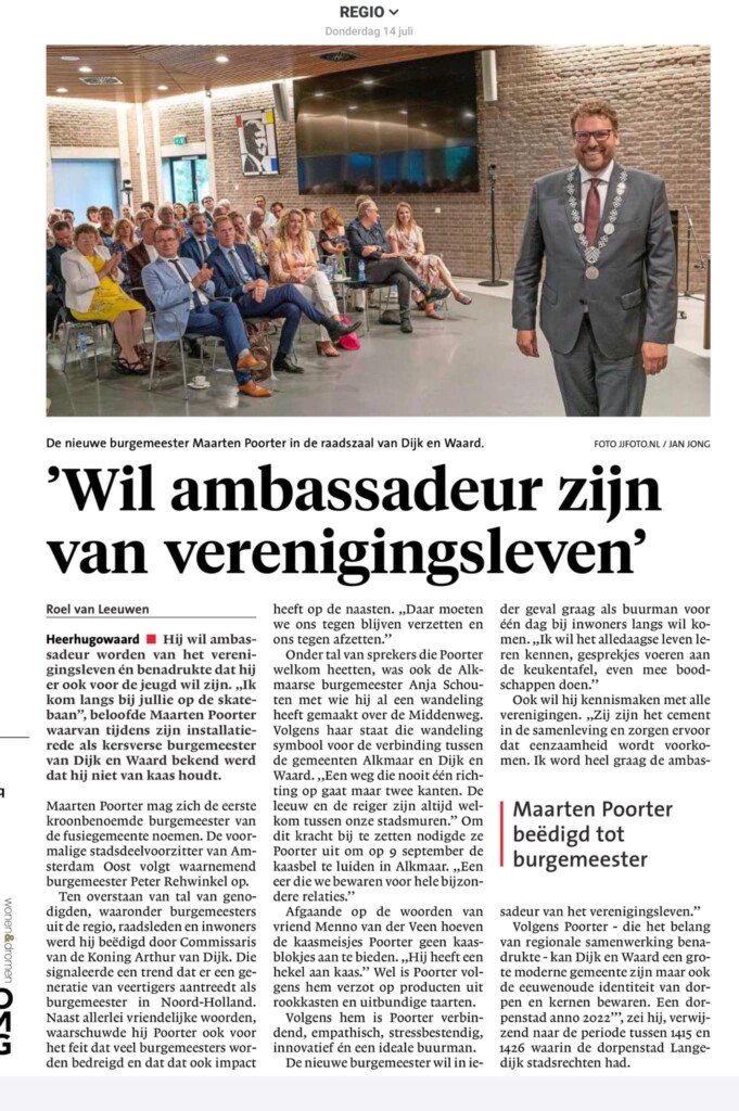 Prima toespraak Carola Van ’t Schip! De DOP heeft ook vertrouwen in deze burgemeester! Welkom Maarten Poorter! Gisterenavond als voorzitter vd vertrouwenscommissie een welkomstoespraak mogen geven tijdens de beëdiging van de nieuwe Burgemeester van Dijk en Waard: Maarten Poorter